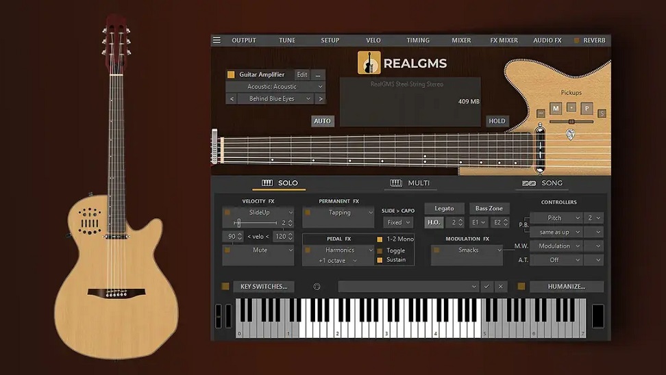 Кроме того, программа поддерживает MIDI, что дает пользователям возможность управлять инструментом через внешние контроллеры или программные секвенсоры. Это позволяет создать максимально точную и динамичную гитарную партию, подходящую для различных аранжировок.